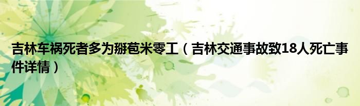 大家好,綜合小編來為大家講解下。吉林車禍死者多為掰苞米零工,吉林交通事故致18人死亡事件詳情很多人還不知道,現在讓我們一起來看看吧!