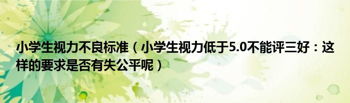大家好,綜合小編來為大家講解下。小學生視力不良標準,小學生視力低于5.0不能評三好:這樣的要求是否有失公平呢很多人還不知道,現在讓我們一起來看看吧!