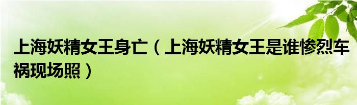 大家好,綜合小編來為大家講解下。上海妖精女王身亡,上海妖精女王是誰慘烈車禍現場照很多人還不知道,現在讓我們一起來看看吧!