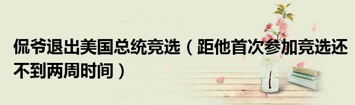 大家好,綜合小編來為大家講解下。侃爺退出美國總統競選,距他首次參加競選還不到兩周時間很多人還不知道,現在讓我們一起來看看吧!