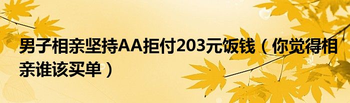 大家好,綜合小編來為大家講解下。男子相親堅持AA拒付203元飯錢,你覺得相親誰該買單很多人還不知道,現(xiàn)在讓我們一起來看看吧!