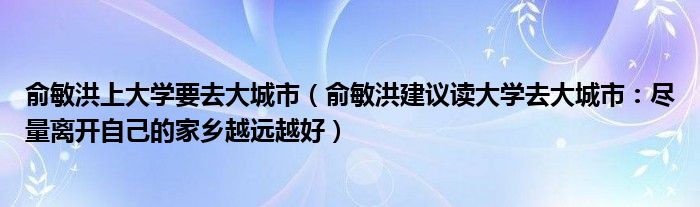 大家好,綜合小編來為大家講解下。俞敏洪上大學要去大城市,俞敏洪建議讀大學去大城市:盡量離開自己的家鄉越遠越好很多人還不知道,現在讓我們一起來看看吧!