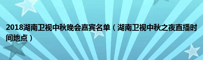 大家好,綜合小編來為大家講解下。2018湖南衛視中秋晚會嘉賓名單,湖南衛視中秋之夜直播時間地點很多人還不知道,現在讓我們一起來看看吧!
