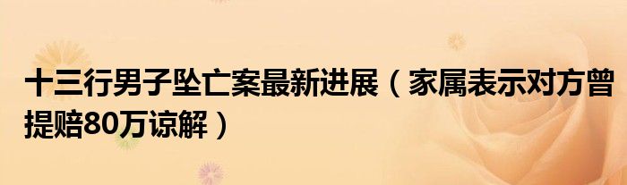 大家好,綜合小編來為大家講解下。十三行男子墜亡案最新進(jìn)展,家屬表示對方曾提賠80萬諒解很多人還不知道,現(xiàn)在讓我們一起來看看吧!