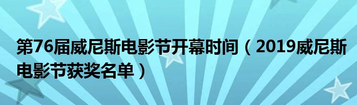 第76屆威尼斯國際電影節(jié)于2019年8月28日至9月7日舉辦。