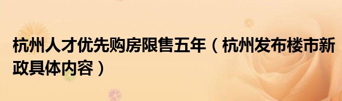 大家好,綜合小編來為大家講解下。杭州人才優先購房限售五年,杭州發布樓市新政具體內容很多人還不知道,現在讓我們一起來看看吧!