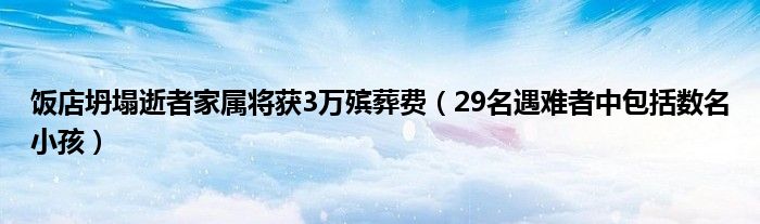 大家好,綜合小編來為大家講解下。飯店坍塌逝者家屬將獲3萬殯葬費,29名遇難者中包括數名小孩很多人還不知道,現在讓我們一起來看看吧!