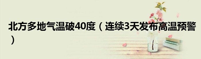 大家好,綜合小編來為大家講解下。北方多地氣溫破40度,連續3天發布高溫預警很多人還不知道,現在讓我們一起來看看吧!