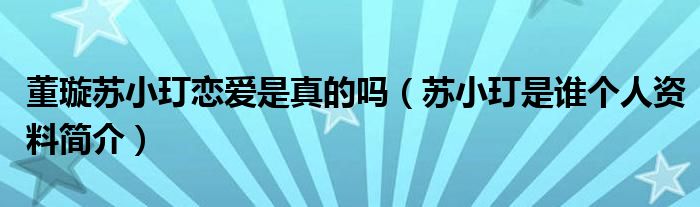 大家好,綜合小編來為大家講解下。董璇蘇小玎戀愛是真的嗎,蘇小玎是誰個人資料簡介很多人還不知道,現在讓我們一起來看看吧!
