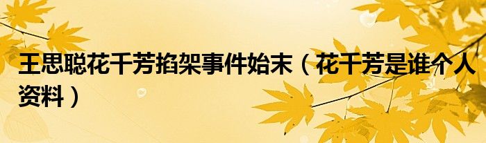 大家好,綜合小編來為大家講解下。王思聰花千芳掐架事件始末,花千芳是誰個人資料很多人還不知道,現在讓我們一起來看看吧!