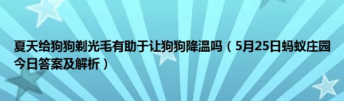 小雞寶寶考考你夏天給狗狗剃光毛,有助于讓狗狗降溫嗎?以上是螞蟻莊園5月25日的問題,答對(duì)可以領(lǐng)取小課堂每天一份的180g小雞飼料。接下來就讓我們一起了解一下給狗狗剃光毛,是否助于讓狗狗降溫吧。