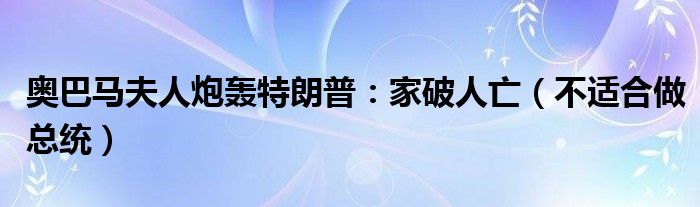 大家好,綜合小編來為大家講解下。奧巴馬夫人炮轟特朗普:家破人亡,不適合做總統很多人還不知道,現在讓我們一起來看看吧!