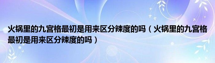 大家好,綜合小編來(lái)為大家講解下。火鍋里的九宮格最初是用來(lái)區(qū)分辣度的嗎,火鍋里的九宮格最初是用來(lái)區(qū)分辣度的嗎很多人還不知道,現(xiàn)在讓我們一起來(lái)看看吧!