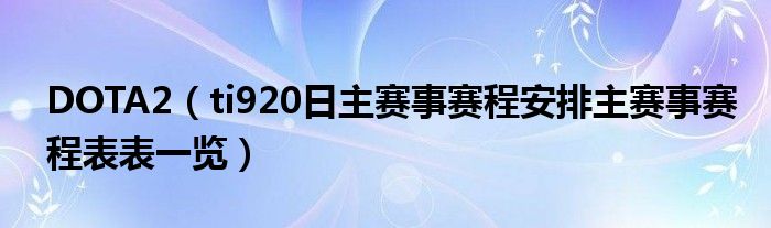 大家好,綜合小編來為大家講解下。DOTA2,ti920日主賽事賽程安排主賽事賽程表表一覽很多人還不知道,現在讓我們一起來看看吧!