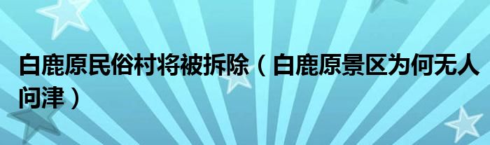大家好,綜合小編來為大家講解下。白鹿原民俗村將被拆除,白鹿原景區為何無人問津很多人還不知道,現在讓我們一起來看看吧!