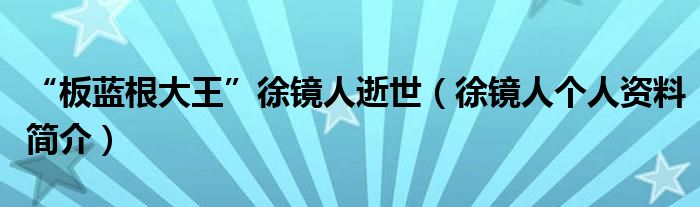 大家好,綜合小編來為大家講解下。“板藍根大王”徐鏡人逝世,徐鏡人個人資料簡介很多人還不知道,現在讓我們一起來看看吧!