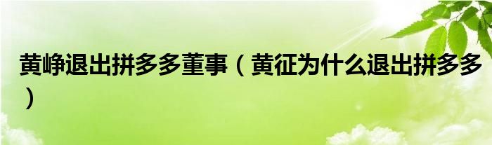 大家好,綜合小編來為大家講解下。黃崢退出拼多多董事,黃征為什么退出拼多多很多人還不知道,現(xiàn)在讓我們一起來看看吧!