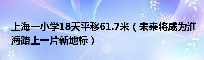 大家好,綜合小編來為大家講解下。上海一小學(xué)18天平移61.7米,未來將成為淮海路上一片新地標(biāo)很多人還不知道,現(xiàn)在讓我們一起來看看吧!