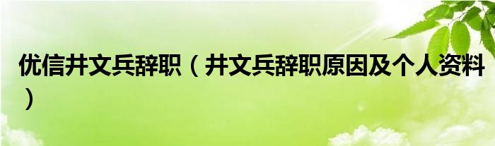 大家好,綜合小編來為大家講解下。優信井文兵辭職,井文兵辭職原因及個人資料很多人還不知道,現在讓我們一起來看看吧!