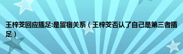 大家好,綜合小編來為大家講解下。王梓芠回應(yīng)插足:是留宿關(guān)系,王梓芠否認(rèn)了自己是第三者插足很多人還不知道,現(xiàn)在讓我們一起來看看吧!