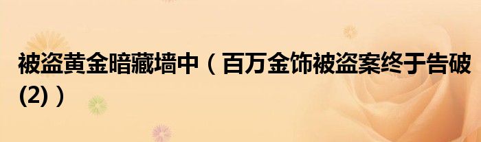 大家好,綜合小編來為大家講解下。被盜黃金暗藏墻中,百萬金飾被盜案終于告破(2)很多人還不知道,現在讓我們一起來看看吧!