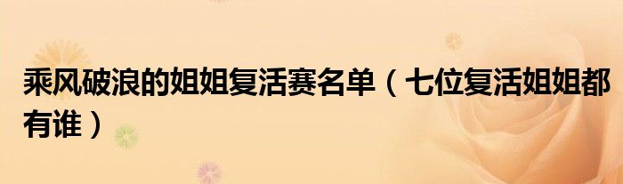 大家好,綜合小編來為大家講解下。乘風(fēng)破浪的姐姐復(fù)活賽名單,七位復(fù)活姐姐都有誰很多人還不知道,現(xiàn)在讓我們一起來看看吧!