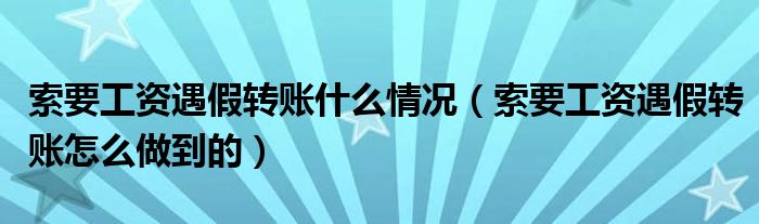 大家好,綜合小編來為大家講解下。索要工資遇假轉賬什么情況,索要工資遇假轉賬怎么做到的很多人還不知道,現在讓我們一起來看看吧!