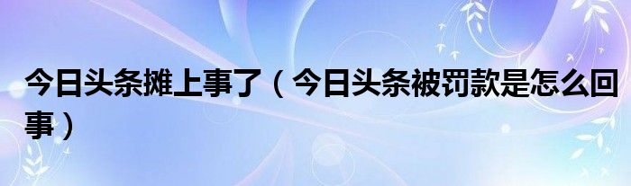 大家好,綜合小編來為大家講解下。今日頭條攤上事了,今日頭條被罰款是怎么回事很多人還不知道,現在讓我們一起來看看吧!
