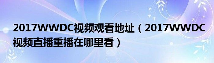 大家好,綜合小編來為大家講解下。2017WWDC視頻觀看地址,2017WWDC視頻直播重播在哪里看很多人還不知道,現在讓我們一起來看看吧!