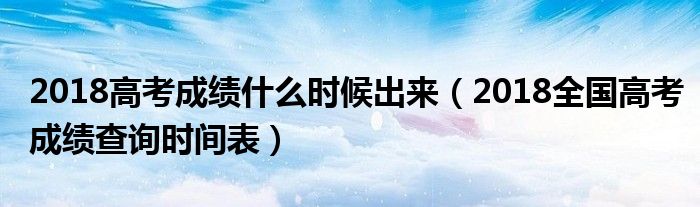 大家好,綜合小編來為大家講解下。2018高考成績什么時候出來,2018全國高考成績查詢時間表很多人還不知道,現在讓我們一起來看看吧!