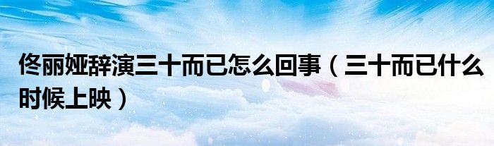 大家好,綜合小編來為大家講解下。佟麗婭辭演三十而已怎么回事,三十而已什么時候上映很多人還不知道,現在讓我們一起來看看吧!
