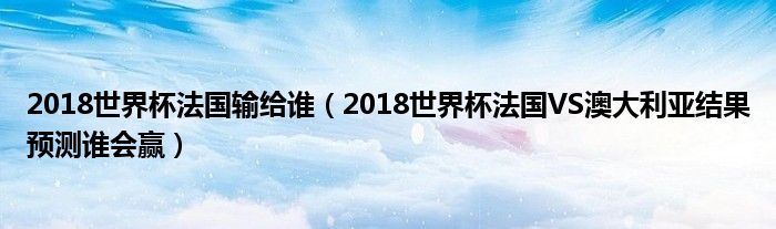 大家好,綜合小編來為大家講解下。2018世界杯法國輸給誰,2018世界杯法國VS澳大利亞結(jié)果預(yù)測誰會贏很多人還不知道,現(xiàn)在讓我們一起來看看吧!