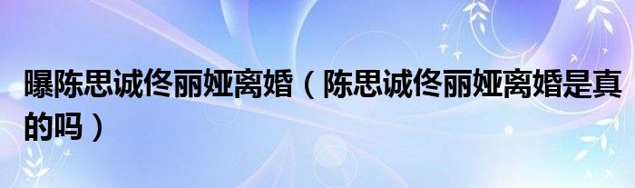 大家好,綜合小編來為大家講解下。曝陳思誠佟麗婭離婚,陳思誠佟麗婭離婚是真的嗎很多人還不知道,現(xiàn)在讓我們一起來看看吧!