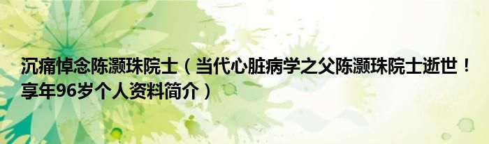 【當代心臟病學之父陳灝珠院士逝世!享年96歲個人資料簡介】今天凌晨3點09分,中國工程院院士、“當代心臟病學之父”陳灝珠院士逝世,享年96歲。