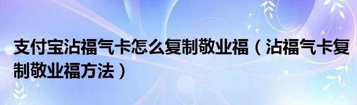 大家好,綜合小編來為大家講解下。支付寶沾福氣卡怎么復制敬業福,沾福氣卡復制敬業福方法很多人還不知道,現在讓我們一起來看看吧!