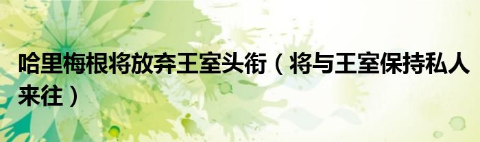 大家好,綜合小編來(lái)為大家講解下。哈里梅根將放棄王室頭銜,將與王室保持私人來(lái)往很多人還不知道,現(xiàn)在讓我們一起來(lái)看看吧!