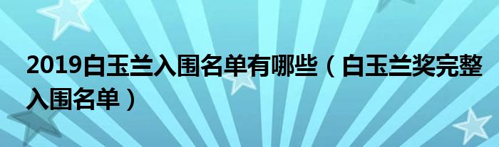 大家好,綜合小編來為大家講解下。2019白玉蘭入圍名單有哪些,白玉蘭獎完整入圍名單很多人還不知道,現在讓我們一起來看看吧!