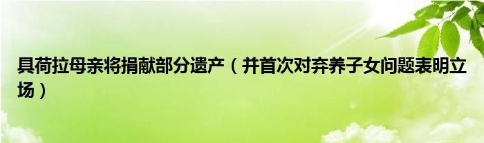 大家好,綜合小編來為大家講解下。具荷拉母親將捐獻部分遺產,并首次對棄養子女問題表明立場很多人還不知道,現在讓我們一起來看看吧!