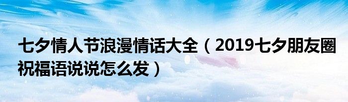 大家好,綜合小編來為大家講解下。七夕情人節浪漫情話大全,2019七夕朋友圈祝福語說說怎么發很多人還不知道,現在讓我們一起來看看吧!