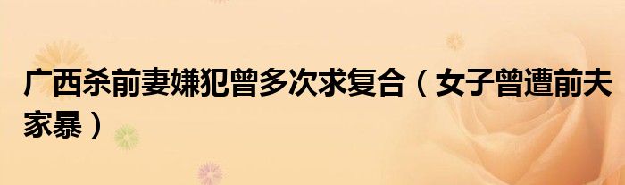 大家好,綜合小編來(lái)為大家講解下。廣西殺前妻嫌犯曾多次求復(fù)合,女子曾遭前夫家暴很多人還不知道,現(xiàn)在讓我們一起來(lái)看看吧!