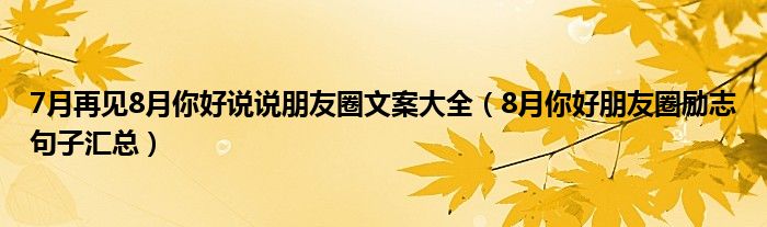 大家好,綜合小編來為大家講解下。7月再見8月你好說說朋友圈文案大全,8月你好朋友圈勵志句子匯總很多人還不知道,現(xiàn)在讓我們一起來看看吧!