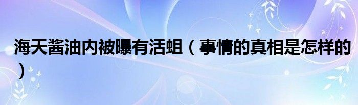 大家好,綜合小編來為大家講解下。海天醬油內被曝有活蛆,事情的真相是怎樣的很多人還不知道,現在讓我們一起來看看吧!