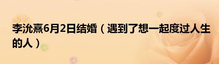 大家好,綜合小編來為大家講解下。李沇熹6月2日結婚,遇到了想一起度過人生的人很多人還不知道,現在讓我們一起來看看吧!