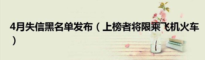 大家好,綜合小編來為大家講解下。4月失信黑名單發布,上榜者將限乘飛機火車很多人還不知道,現在讓我們一起來看看吧!