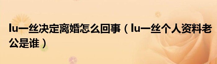 大家好,綜合小編來為大家講解下。lu一絲決定離婚怎么回事,lu一絲個人資料老公是誰很多人還不知道,現在讓我們一起來看看吧!