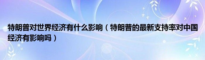大家好,綜合小編來為大家講解下。特朗普對世界經濟有什么影響,特朗普的最新支持率對中國經濟有影響嗎很多人還不知道,現在讓我們一起來看看吧!