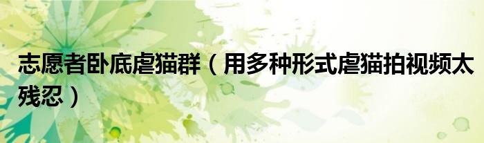 大家好,綜合小編來為大家講解下。志愿者臥底虐貓群,用多種形式虐貓拍視頻太殘忍很多人還不知道,現在讓我們一起來看看吧!