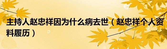 大家好,綜合小編來為大家講解下。主持人趙忠祥因為什么病去世,趙忠祥個人資料履歷很多人還不知道,現(xiàn)在讓我們一起來看看吧!