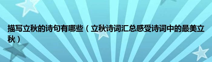 大家好,綜合小編來為大家講解下。描寫立秋的詩句有哪些,立秋詩詞匯總感受詩詞中的最美立秋很多人還不知道,現在讓我們一起來看看吧!