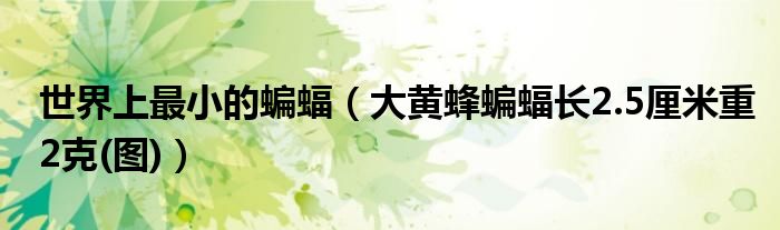 大家好,綜合小編來(lái)為大家講解下。世界上最小的蝙蝠,大黃蜂蝙蝠長(zhǎng)2.5厘米重2克(圖)很多人還不知道,現(xiàn)在讓我們一起來(lái)看看吧!